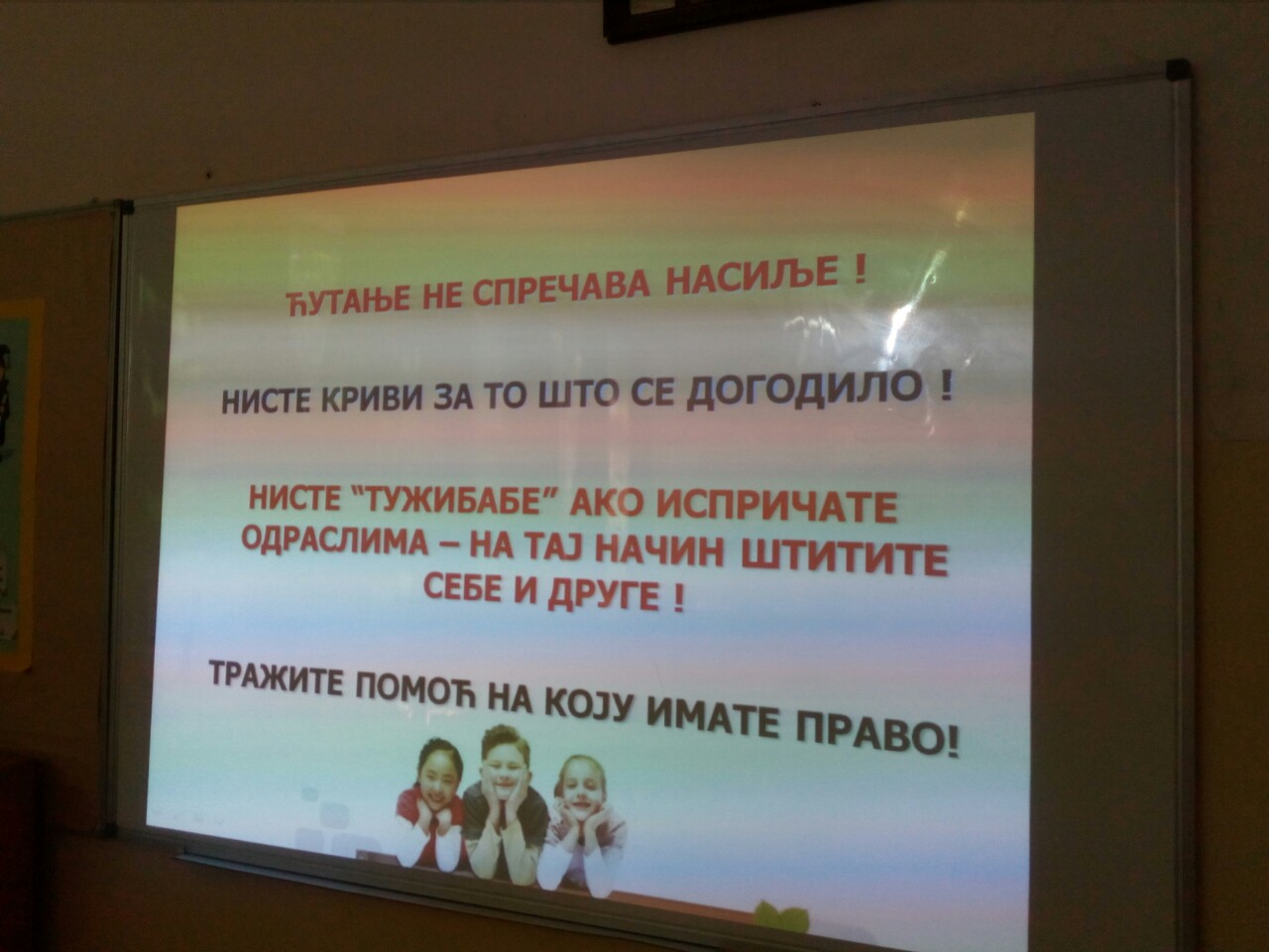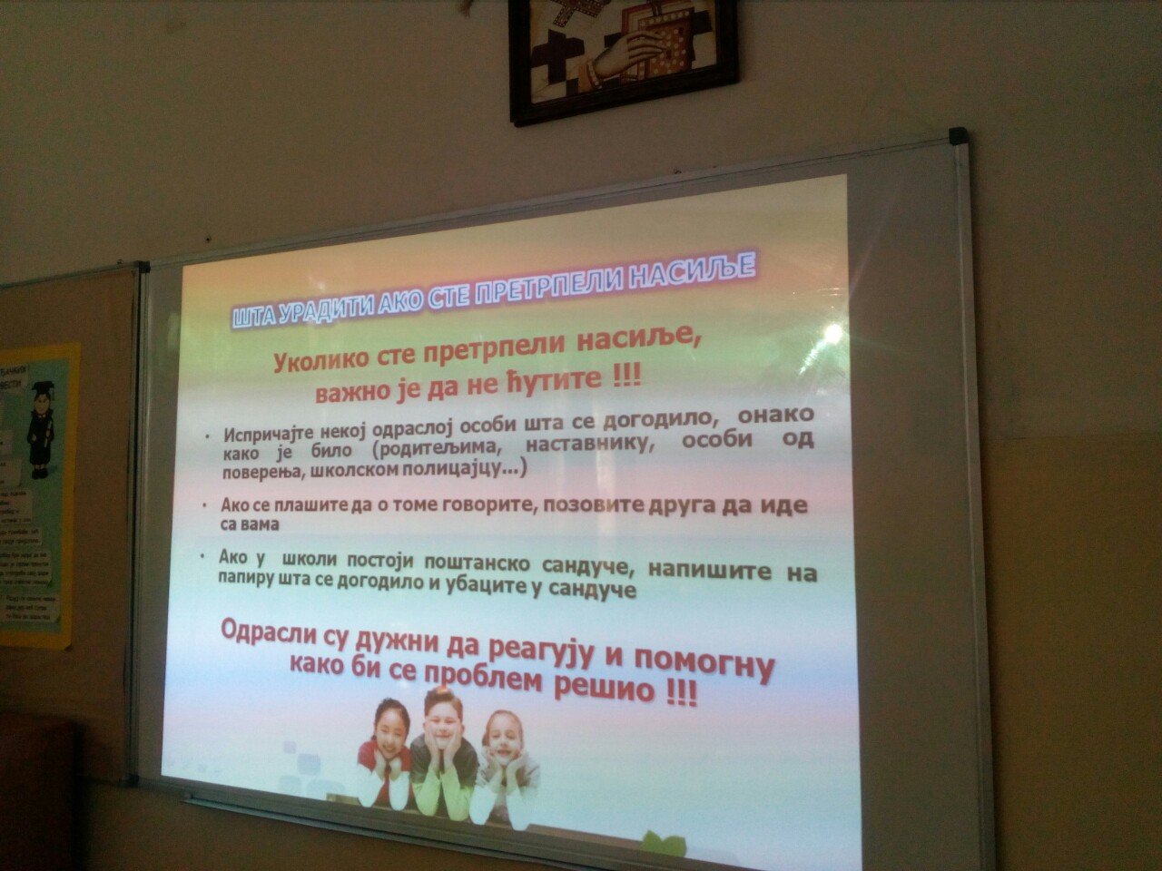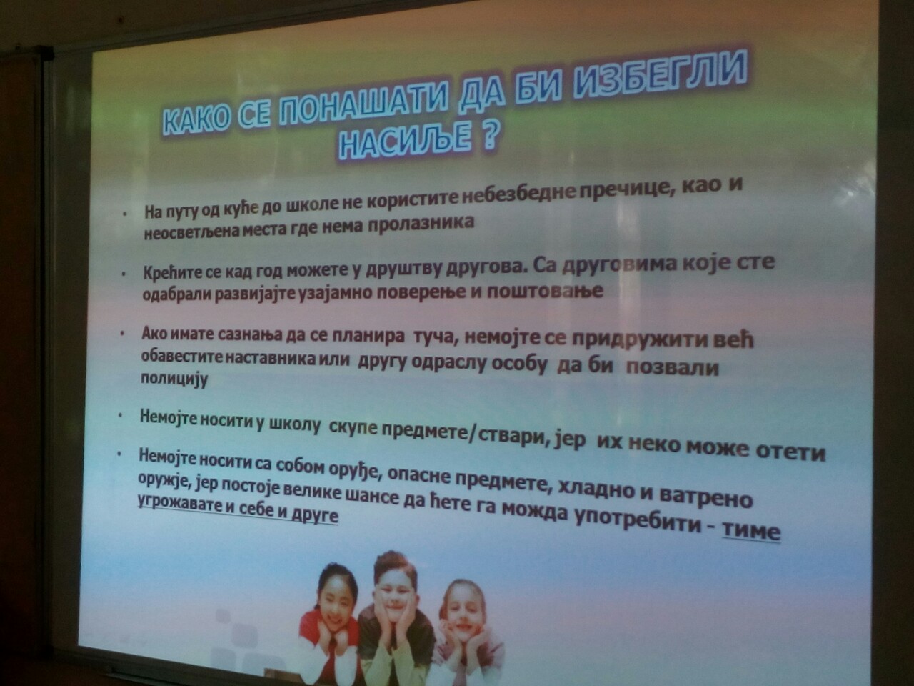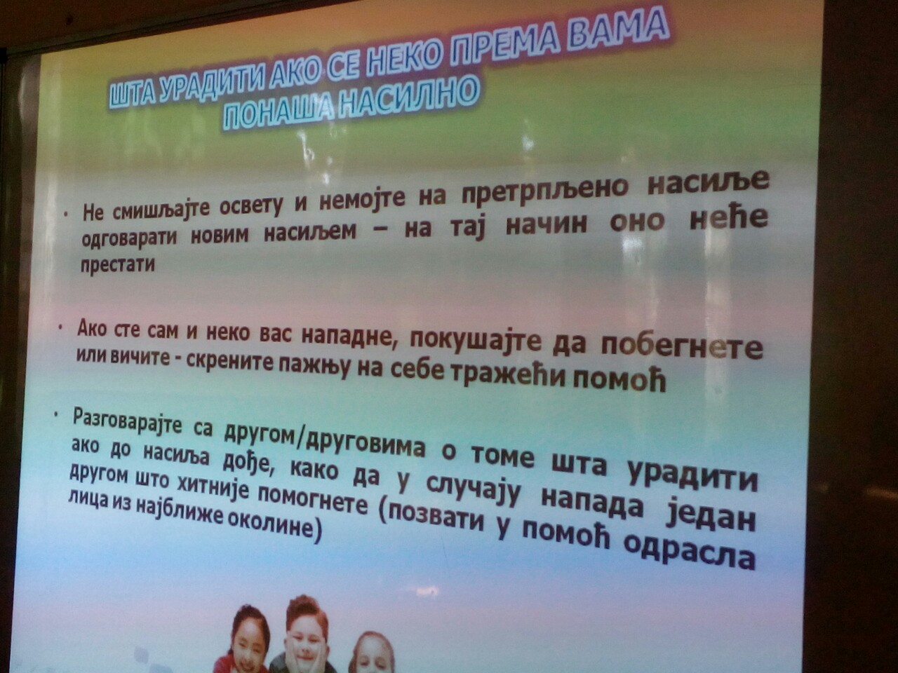 У оквиру теме „Основи безбедности деце“ Ивана Павличевић, полицијски службеник МУП Звездара, одржала је 16. септрембра 2019. у 4/1 предавање са темом Насиље као негативна друштвена појава. Ученици су били веома пажљиви, питања је било много, па се разговор на ову тему наставио на одмору и након предавања.