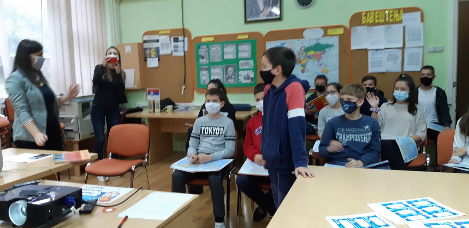 У првом делу путовања наши ученици и њихови вршњаци из непознате земље откривали су ко је из које земље. Играјући се употребили су знање из географије, споразумевали се на енглеском и оснажили своје информатичке компетенције. Када је мистериозна земља откривена – Белорусија, прешло се на ближе упознавање ученика. Свако је рекао нешто о култури своје земље, а другари из Белорусије, града Baranovichi, представили су своју домовину уз помоћ презентације.