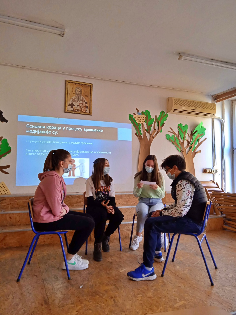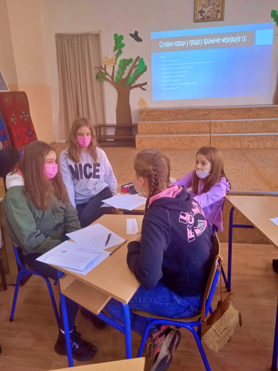 Ученици су се упознали са врстама вршњачког насиља, дискутовали о конструктивним начинима решавања конфликата, видели шта је сврха вршњачке медијације и који су њени кораци у спровођењу у школи. Имали су прилику да се опробају у улози вршњачких медијатора током групног рада, што је по њима био најлепши део обуке.