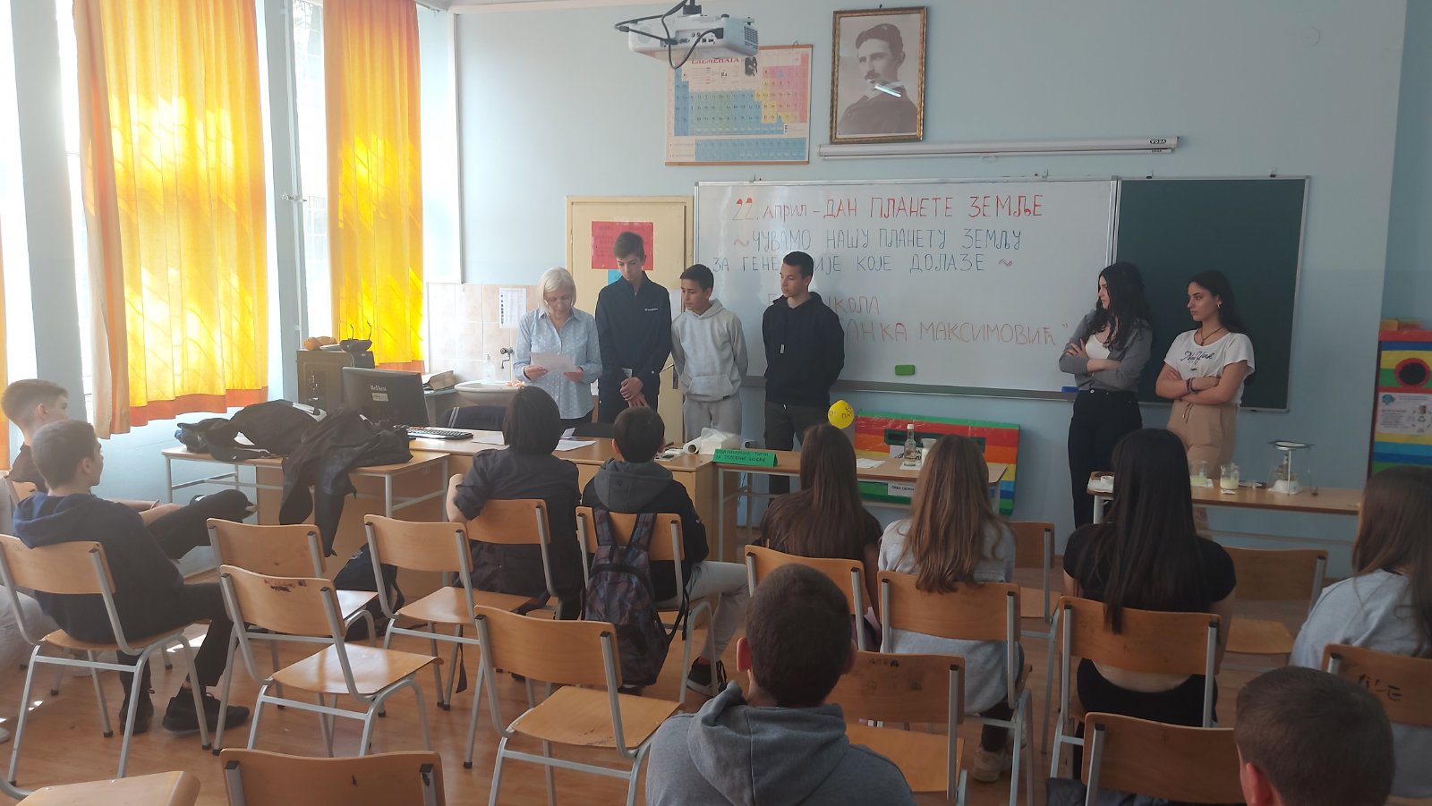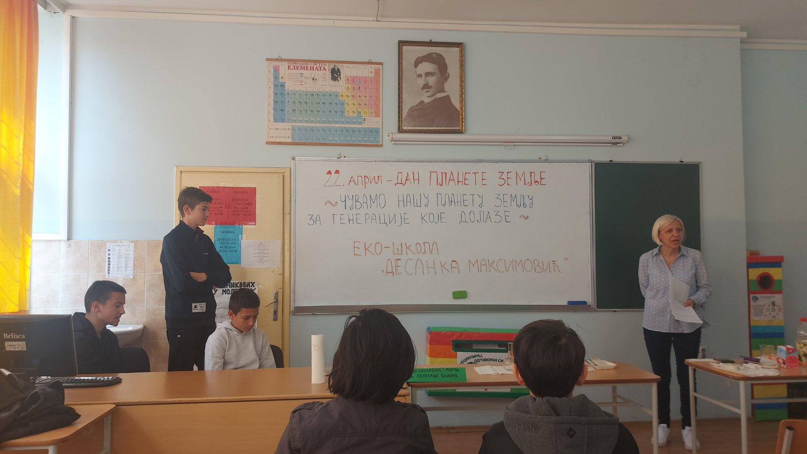 Чланови „Десанкине“ Еко-патроле Никола Младеновић, Вељко Зечевић, Василије Новаковић (ученици 7/3) и Мина Маркељић и Тамара Вучићевић (ученице 8/3) занимљивим и поучним експериментима показали су 20. априла 2023. године својим вршњацима – школским другарима како да чувамо планету Земљу за генерације које долазе.