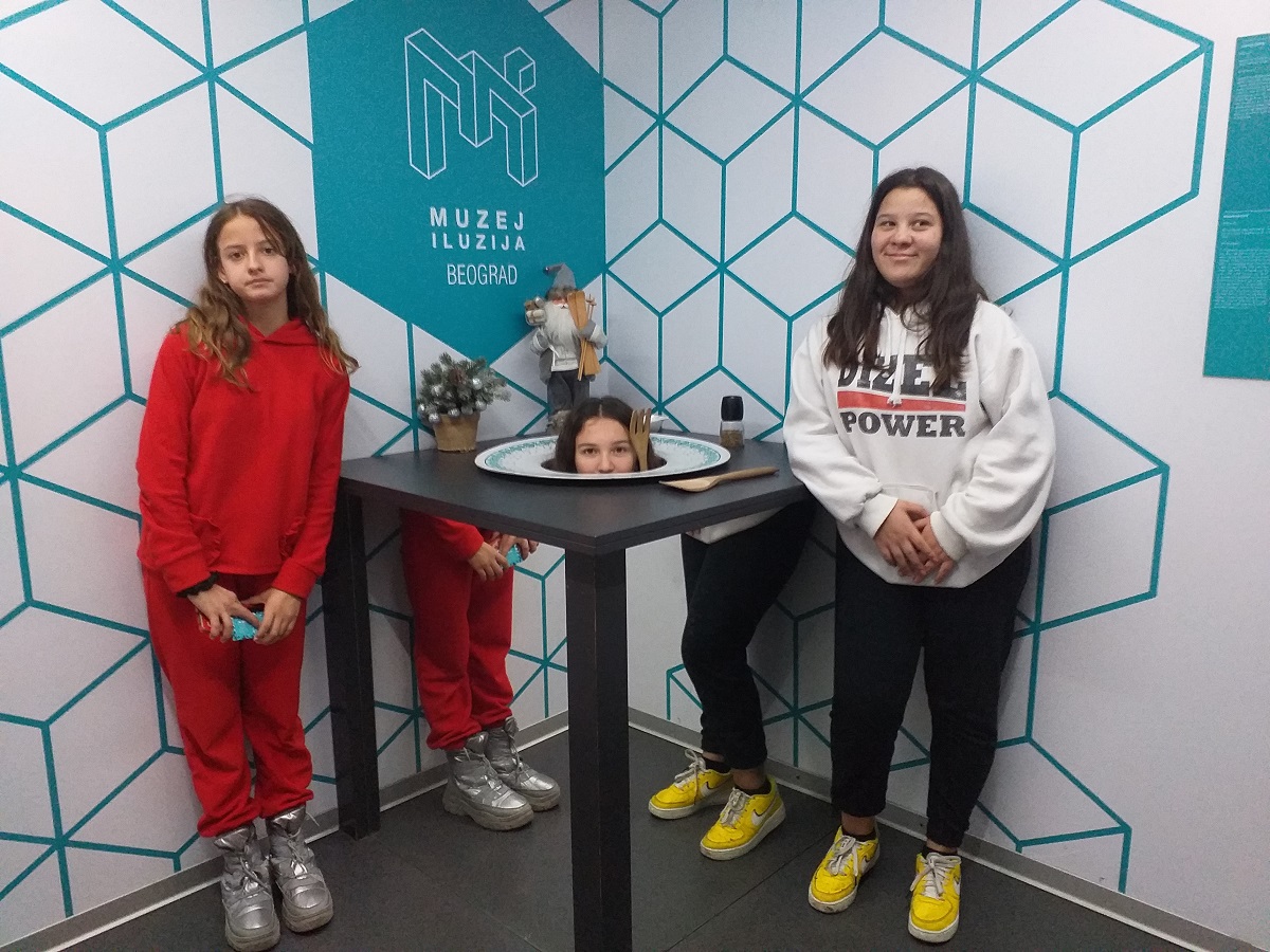 У оквиру предмета СНА „Моја животна средина“, групе ученика VII разреда посетиле су 8. и 14.12.2022. године Музеј илузија у пратњи наставница Снежане Трнавац и Тијане Дамњановић. Ученици су имали прилику да погледају преко 70 експоната везаних у различите врсте оптичких илузија и холограма. Варљиво прстење, грамофони, клон сто, Огледало истине и друге оптичке илузије су само део целокупне поставке који су привукли пажњу ученика. Сви ученици су прошетали кроз јединствен Вортекс тунел, док су Обрнута соба, Амес соба и Колор соба посебно подстакле ученике на размишљање како, помоћу оптичких трикова, може да се изведе „магија“.