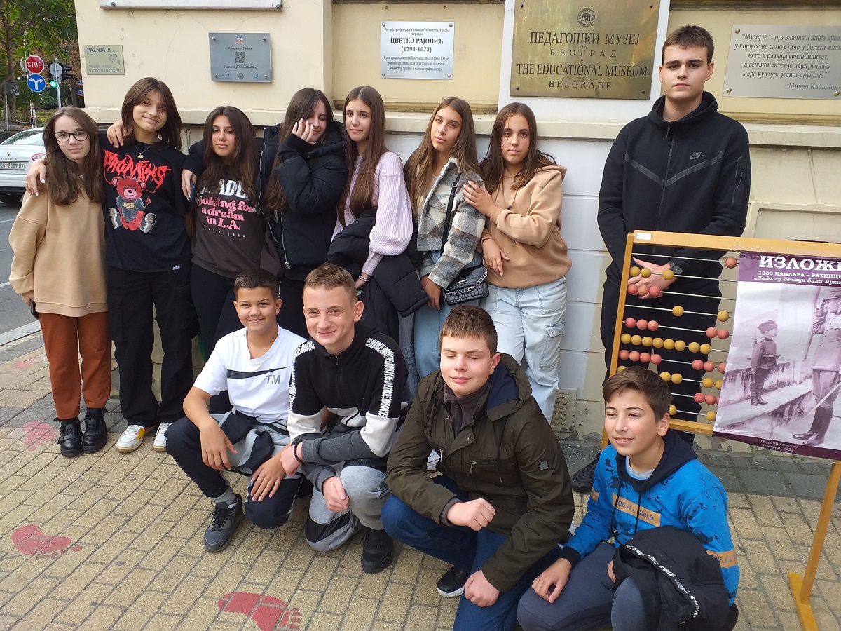 У оквиру предмета СНА Предузетништво, група ученика одељења 8/2 је у петак, 21.10.2022, у пратњи одељенског старешине Снежане Трнавац, посетила Педагошки музеј. Ученици су разгледали поставку Музеја и саслушали предавање кустоса о развоју писмености и школства у Србији у 19. веку, као и о наставним средствима која су се некада користила у школама. Ученике је заинтересовала и изложба наставних средстава која су употребљавана у нашим школама током 20. века. Са великим интересовањем су разгледали старе музичке инструменте, писаће машине и друге предмете.