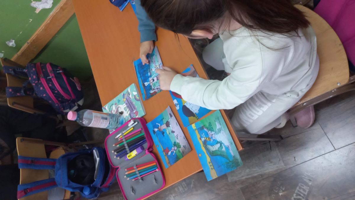 У главном делу часа слушали су и анализирали песму „Авантуре малога Јујуˮ П. Бергама, након чега је уследила нова игра: погађање. Сви су добили по неки део песме у стрипу, а њихов задатак је био да их, док слушају део по део, поређају хронолошким редом са својим паром из клупе, а у циљу учења и памћења песме.