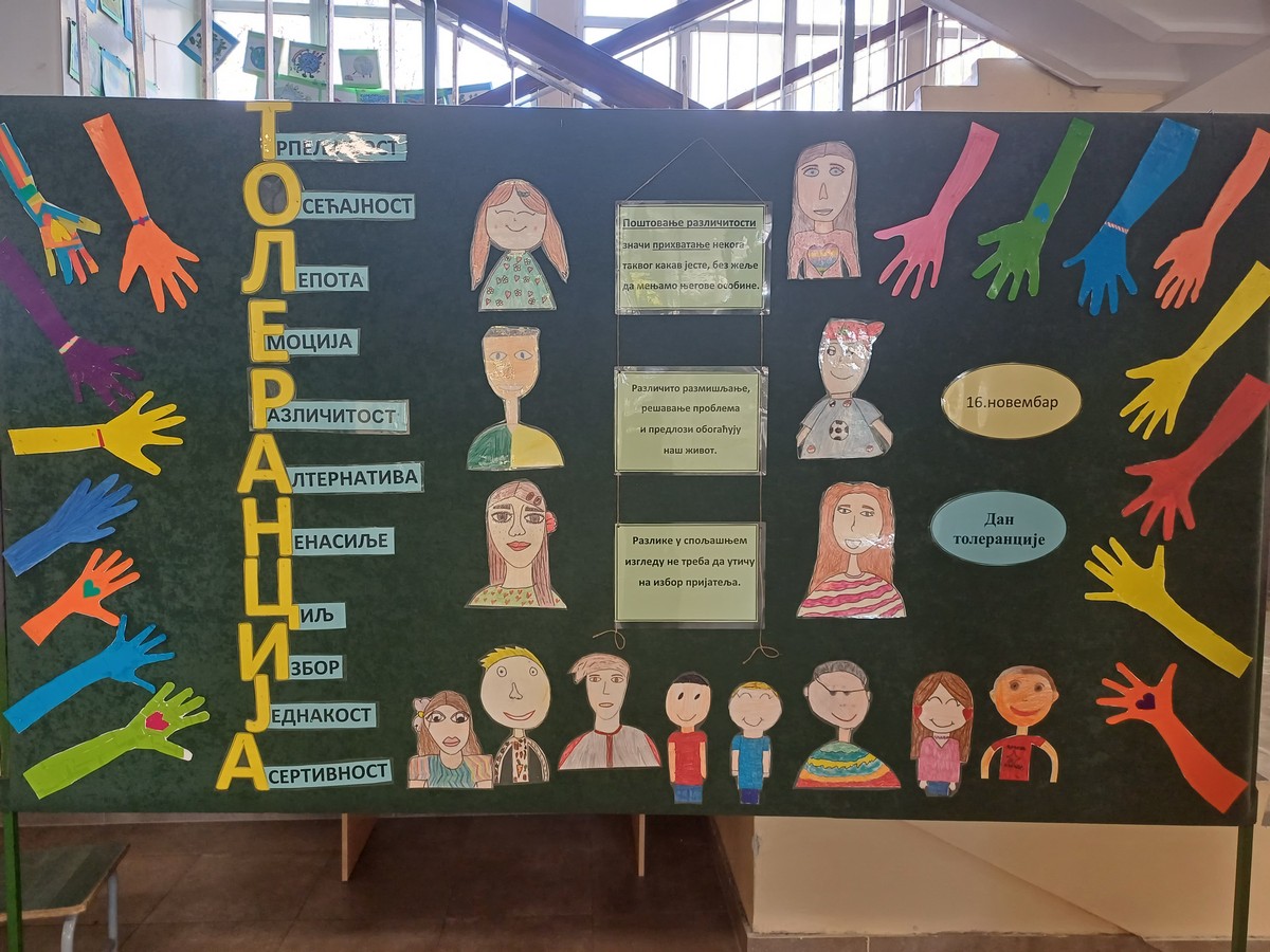 Једна од активности приликом обележавања Дана толеранције у 2023/2024. школској години, била је и упознавање са концептима толеранције и дискриминације. Ученици 5/4 су имали прилику да се кроз презентацију Министарства просвете, израђену у сарадњи са Повереником за заштиту равноправности, упознају са овим концептима и схвате њихов значај кроз разноврсне примере. Посебно је истакнут значај поштовања и уважавања различитости у сваком смислу.