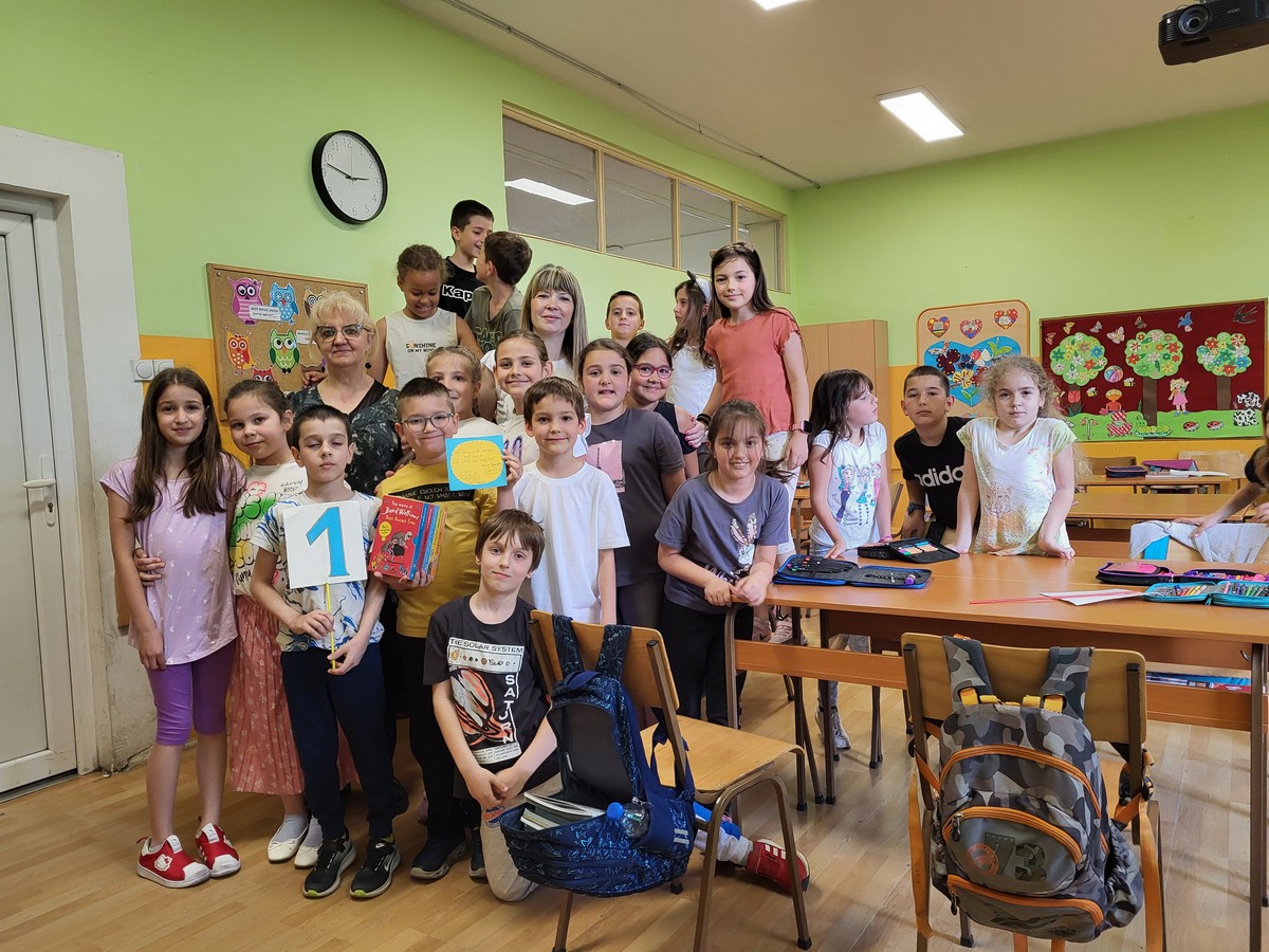 Aware of the significance of Damjan's feat, the students of class II/3, together with their teacher Dostana Pavlović and teacher Jelena Đorđević, organized a surprise party for Damjan. On this occasion, they also held an English language quiz.