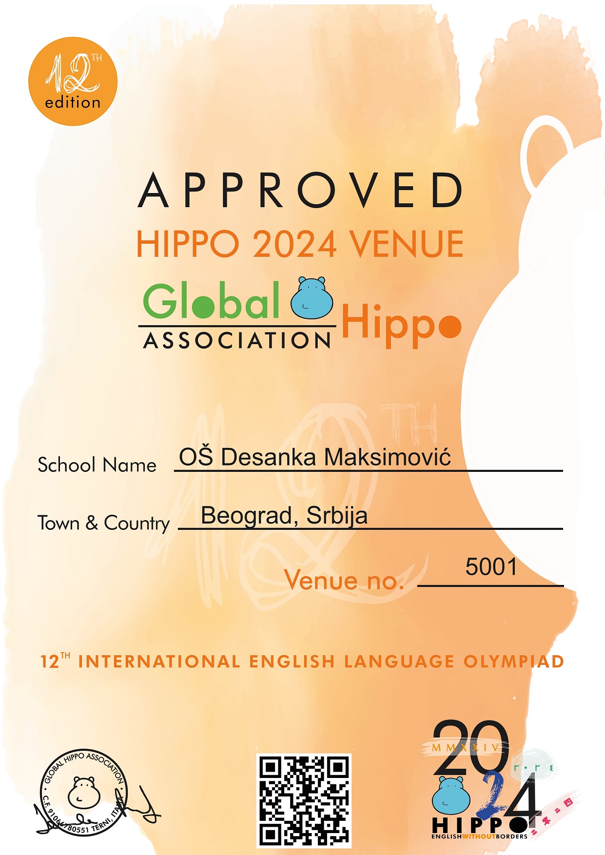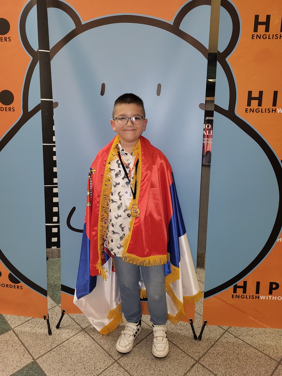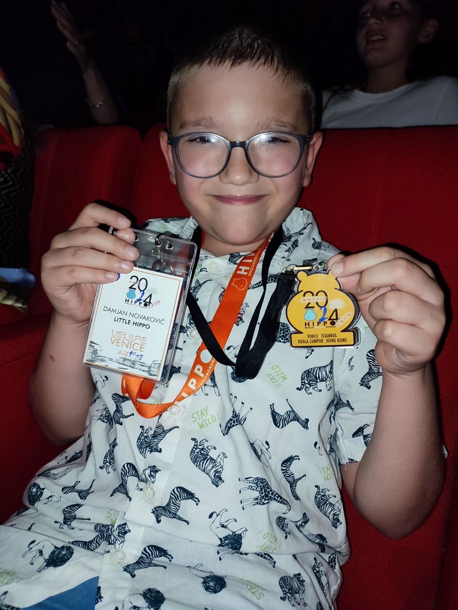 The European finals of the "HIPPO" English language competition were held on May 22, 2024, in Venice. Our school was represented by Damjan Novaković, a student from class II/3, accompanied by his teacher Jelena Đorđević. Damjan returned home with a medal, having secured the 10th place. Our school received a certificate as a participant in this international competition, and the students who achieved success in the previous rounds also received certificates according to their accomplishments, in line with the CEFR (Common European Framework of Reference for Languages).