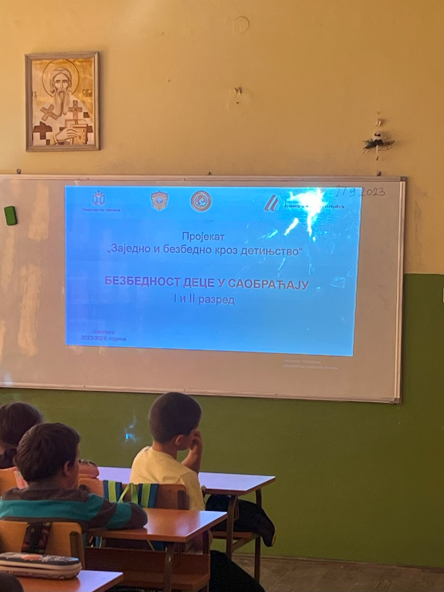 Представници МУП-а су у оквиру пројекта „Заједно и безбедно кроз детињствоˮ 27. 9. 2023. године одржали радионицу на тему „Безбедност деце у саобраћајуˮ у одељењу 2/1.