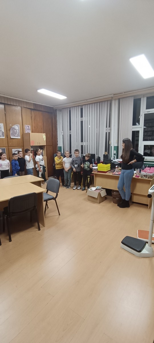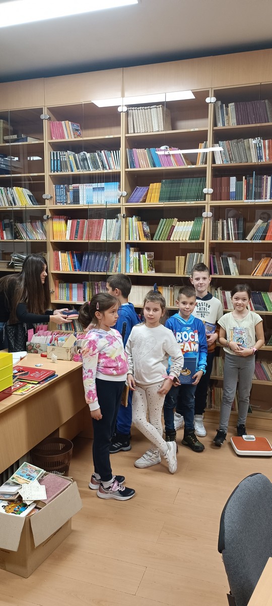 On November 3, 2023, students from classes 2/1 and 2/3 visited the school library with their teachers, Dostana Pavlovic and Marija Djurdjevac. They were introduced to the librarian Milica, who spoke to the students about the record-keeping of borrowing and returning books, the duration they can keep a borrowed book, proper book care, and selecting literature suitable for their age.