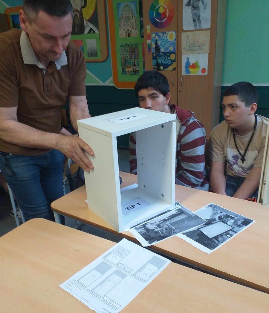 As part of the "Parent as Collaborator - Lecturer" project and within the framework of career orientation for seventh and eighth-grade students, on Friday, April 12, 2024, students of classes VII/2 and VIII/2 were introduced to the occupation of carpentry. The presentation was conducted by carpenter Milivoje Đurić, the father of Anđelija Đurić, a student of class VII/2.